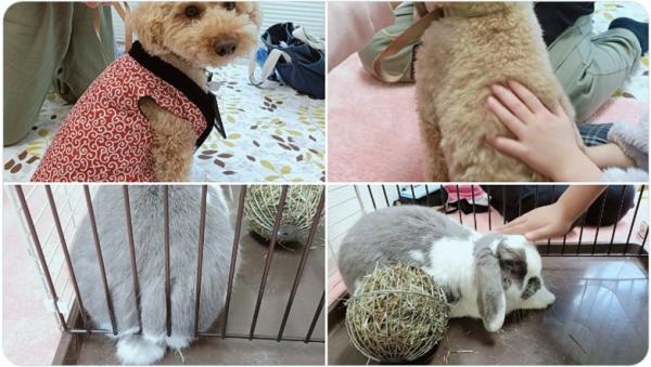 1月18日の#おでかけハローアニマルは小諸会場で開催♪前半はサポーター犬の「モモ」ちゃんが参加してくれました。#ふれあいに参加してくれた皆さんと笑顔のすてきな時間を過ごしていました。#うさぎの「ぽてまる」は抱っこ袋から顔をだしたりもぐったりかくれんぼをしているようでした。#小諸