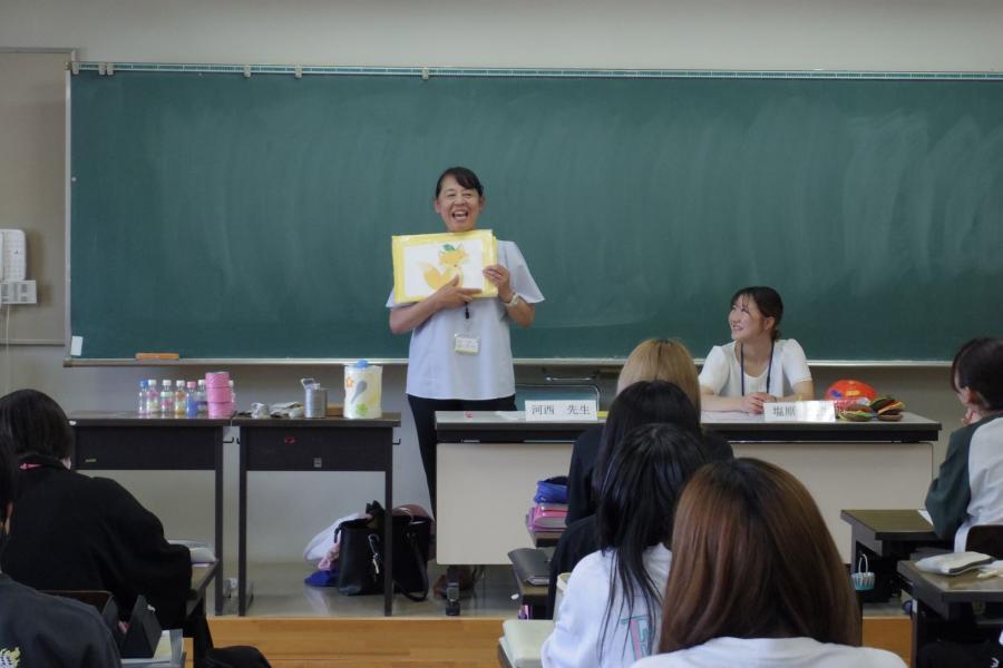 【保育士養成懇談会】 例年、保育園長などをされている本校の卒業生の方からお話を聞く機会を持っています。今年も「先輩の経験に学ぶ保育現場の勘所」と題して実践的なお話を聞きました。 |