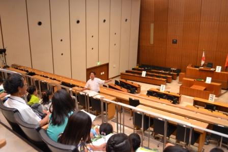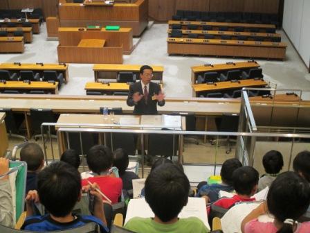県庁見学に訪れた上伊那郡南箕輪村の小学生に小島副議長が議場説明を行いました