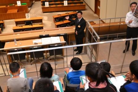 県庁見学に訪れた佐久市、木曽郡大桑村及び下伊那郡喬木村の小学生に小島副議長が議場説明を行いました