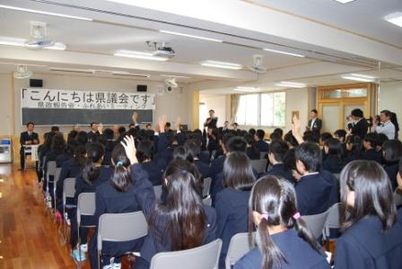 上伊那郡南箕輪村の小学生に説明する小島副議長
