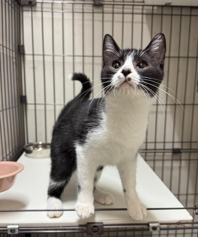↑(3)黒白、メス(不妊済み)、2025年2月頃生まれ、猫エイズ陽性、猫白血病陰性
