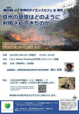 | 第1回 | 信州の草原はどのように利用されてきたのか | 12月21日(月曜日) | 開催済み |