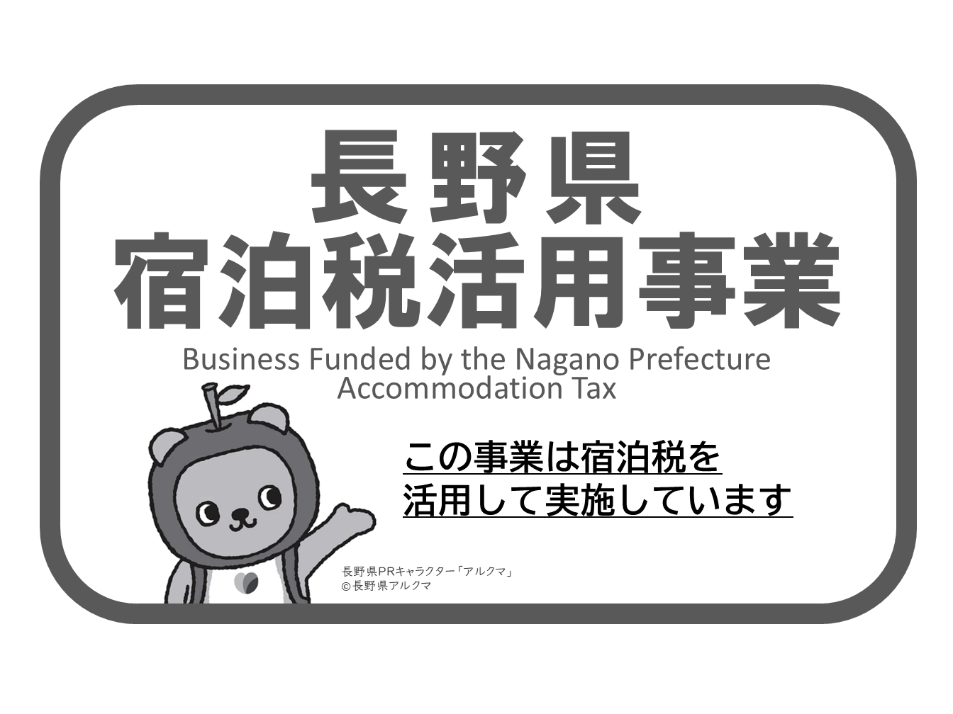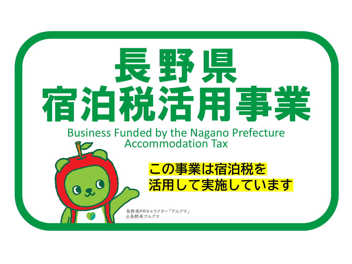 補助事業等により宿泊税活用事業を実施する場合は、長野県宿泊税を活用した事業である旨の記載又はロゴマーク表示が必要です。