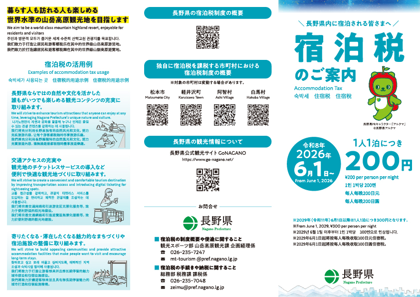 ※ 令和7年(2025年)11月11日付けで、長野県宿泊税の新設について総務大臣同意となりました