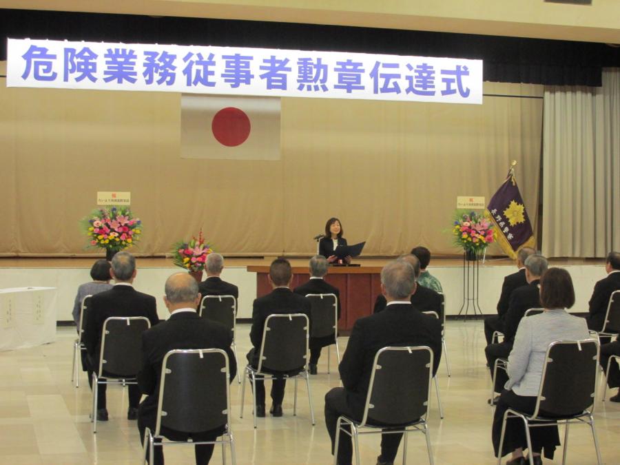 委員3名は、危険業務従事者勲章伝達式に出席し、山本委員長が祝辞を述べました。