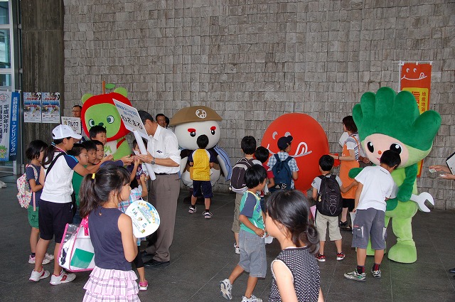 「アルクマ」は、佐久市立臼田小学校と上田市立浦里小学校を訪問。会場を訪れた皆さんにパンフレットなどを配って信州DCをPRしました。