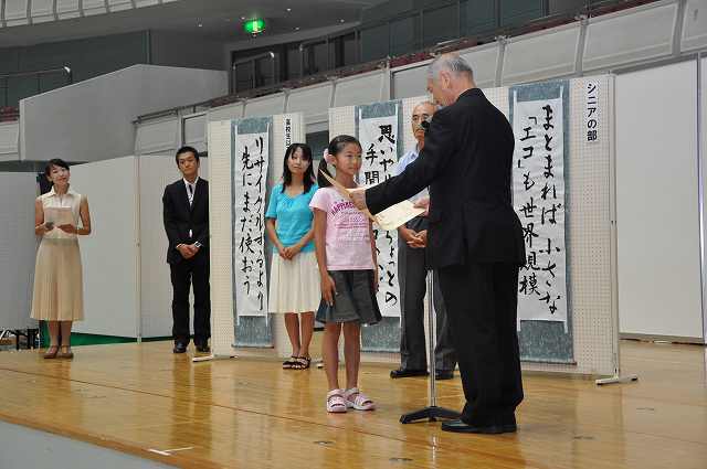 10回目の開催を記念して事前に「エコ川柳」を募集し、この日、最優秀作品に選ばれた3名の皆さんに村井知事から賞状と記念品が手渡されました。