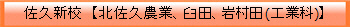 平成24年7月26日の教育委員会定例会において、「北佐久農業高等学校、臼田高等学校及び岩村田高等学校工業科の再編統合」に係る実施計画に基づく新たな高等学校の設置に伴い、校名の変更を決定しました。 高等学校の校名変更について(PDF形式:137KB/1p)