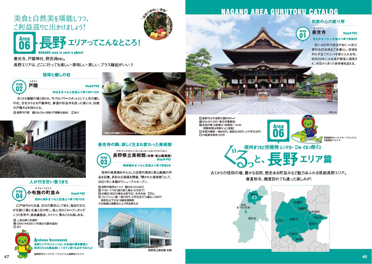 信州まつもと空港からレンタカーでの観光を考えている方は、旅の前に各エリアの飲食店や観光スポット、アクティビティなどを、ぜひチェックしてみてください!