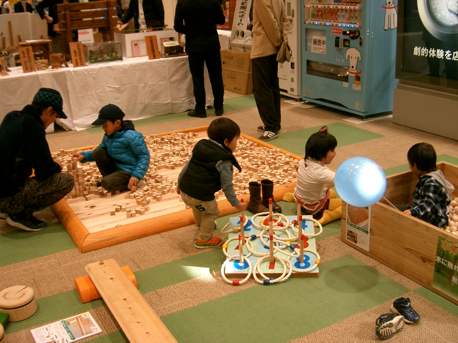 みんなで支える森林づくり感謝デーにキッズプレイコーナーを設けました。 当日は、長野県の森林大使「CWニコル」さんと阿部守一長野県知事の対談、児童木工作品コンクール表彰式、木質バイオマス展が同時開催され、大勢のお客さんで賑わいました。 ☆ 「森とみどりの贈りもの展」 平成23年10月30日(日曜日) ステーションビル MIDORI 長野店 5階特設会場
