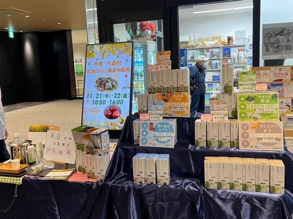 - 乾燥きのこのほか、旬のりんごやぶどうなどの青果物を販売しました。