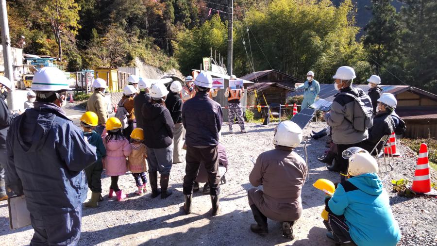 令和3年11月9日に天龍中学校、11月20日に天龍村住民の方々を対象に掘削中の(仮称)神原トンネルにおいて、工事現場見学会を開催しました。