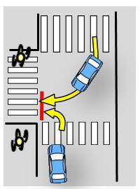 「車両は、歩道等に入る直前で一時停止し、かつ、歩行者の通行を妨げないようにしなければならない」と規定されています。(道路交通法第17条第2項)