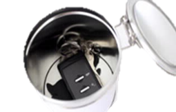 リレーアタックはスマートキーから出る微弱電波を専用機器で受信・増幅・中継して車に電波を受信させるので、金属の缶や専用のケースに入れて電波を遮断し、車から遠い部屋で保管する。