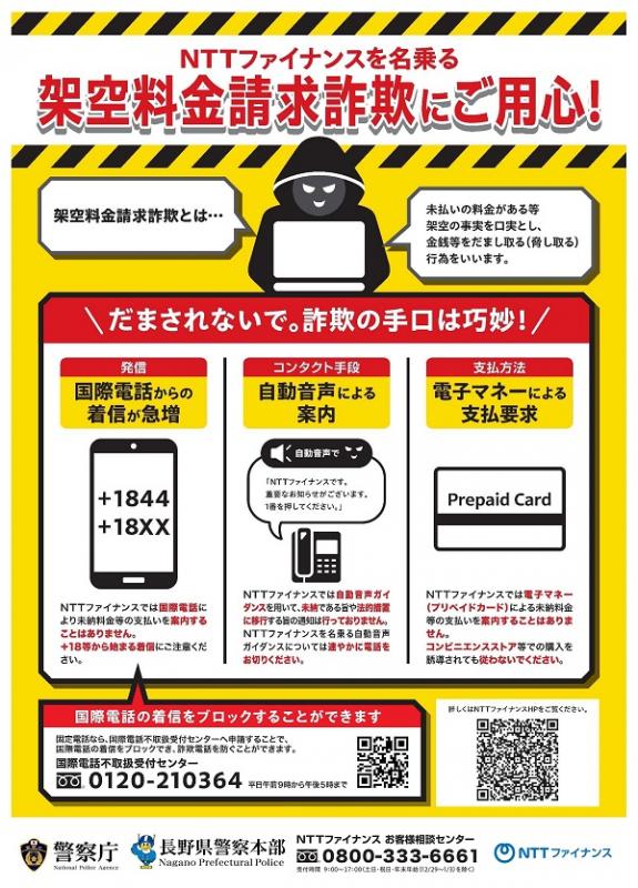 長野県警察本部や警察署の電話番号を偽造した詐欺の電話が急増中!!(R7.3.21)(PDF:422KB)