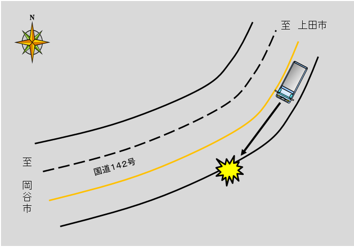 令和7年11月29日(土曜日)午後7時43分頃、国道の右カーブを進行中の大型貨物車(35歳・男性)がガードレールと衝突し、運転者が亡くなる交通事故が発生しました。