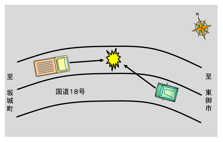 令和6年11月22日(金曜日)午前8時25分頃、市道を進行中の軽貨物車(85歳男性)と、対向進行中の中型貨物車(28歳男性)が衝突し、軽貨物車の運転者が亡くなる交通事故が発生しました。