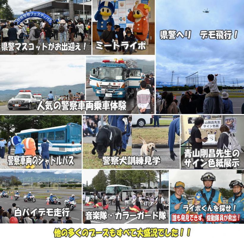 10月5日、中南信運転免許センターで、「長野県警察フェスティバル」を開催しました。来場者は4,500人に上り、音楽隊ミニコンサートや県警ヘリコプターのデモ飛行、白バイのデモ走行、パトカー乗車体験など、全42ブースの様々な催しを行いました。
