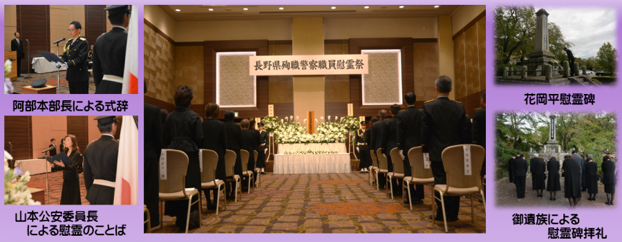 10月16日、ホテルメトロポリタン長野において、「長野県殉職警察職員慰霊祭」が行われました。長野県公安委員長等を来賓に迎え、警察本部長以下警察職員らが、哀悼の誠を捧げました。