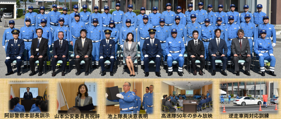 今年、長野県警察高速道路交通警察隊が発足50年を迎え、10月20日、ネクスコ東日本長野管理事務所において50周年式典を開催しました。式典では、「高速隊50年の歩み」の放映、高速道路交通警察隊長が決意表明をしました。