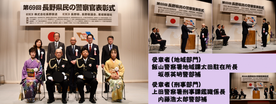 11月18日、長野放送NBSホールで、地域社会の第一線で県民の生命や暮らしを守る警察官を表彰する「第69回長野県民の警察官」表彰式が行われました。