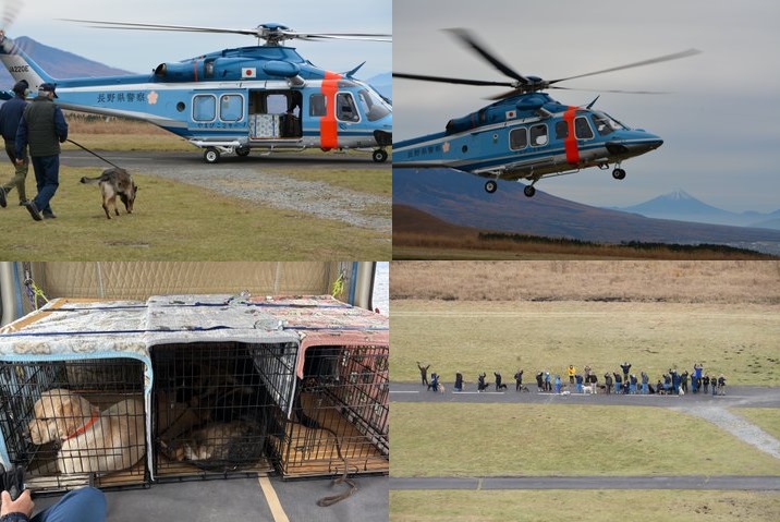 11月13日、事件や災害などに備えた、直轄・嘱託警察犬13頭による合同空輸訓練を、諏訪市の霧ヶ峰高原で実施しました。