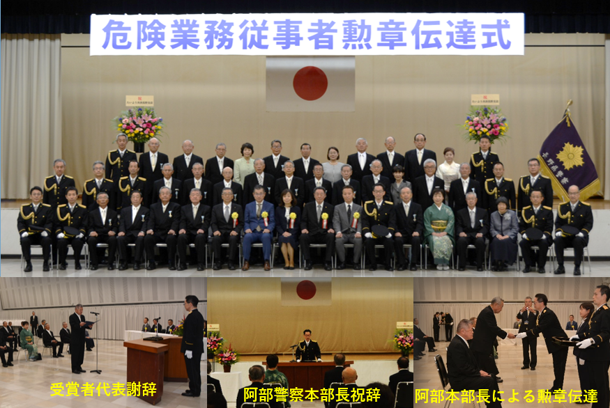 11月6日、県庁講堂において、「第45回危険業務従事者勲章伝達式」が開催されました。危険業務従事者叙勲は、国家又は公共に対し功労のある著しく危険性の高い業務に従事した者に対する叙勲です。