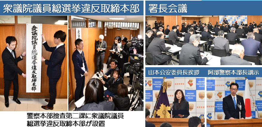 衆議院議員総選挙が行われることに伴い、1月24日、警察本部捜査第二課に「第51回衆議院議員総選挙取締本部」を設置、翌25日、長野県庁で警察署長会議を実施しました。