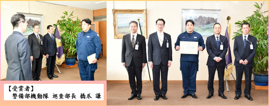 橋爪巡査部長は柔道特別訓練員として警備部機動隊に入隊後、部内外の各種柔道大会で輝かしい実績を残し、現在はキャプテンとして特練チームを牽引しています。また機動隊の活動においても他の模範となり優秀な機動隊員として評価されました。