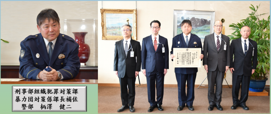 全国優秀警察職員として、県警の柄澤警部が警察功労章を受章し、警察本部長へ受章報告を行いました。