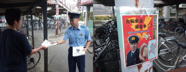 全国地域安全運動に併せ、信州中野駅駐輪場で、自転車利用者の皆さんに「自転車はツーロック」注意喚起を行いました。大切な自転車を盗まれないよう、しっかり鍵を掛けましょう!