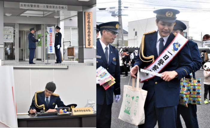 関係機関・団体と協働して、4月4日千曲市で、4月7日坂城町で、それぞれ春の全国交通安全運動出発式と街頭啓発活動を実施しました。