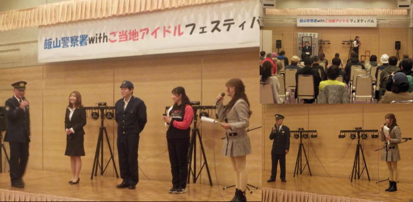 信州ご当地タレントの成美さん、俳優・飯山市観光大使の新保広恵さん、信州ご当地アイドルのりなちさんと共に、「電話でお金詐欺」(ニセ警察騙り)の寸劇を披露し、被害防止を呼び掛けました。