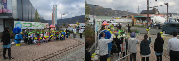 千曲警察署は、杭瀬下保育園、長野県地球温暖化防止活動推進委員会及び千曲市役所とともに、エコドライブの実践を呼び掛ける街頭啓発活動を行いました。