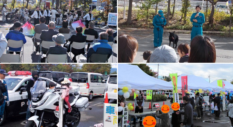 イオン中野店駐車場で「中野警察署フェスティバル2025」を開催しました。長野県警察音楽隊・カラーガード隊や警察犬等の応援もありフェスティバルは盛大に行われました。