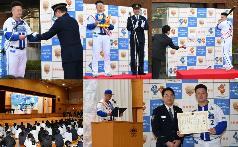 管内の安全・安心のため駆けつけてくれた牧選手には中野警察署長から感謝状が贈呈されました。お忙しい中、笑顔で暖かい御対応ありがとうございました!