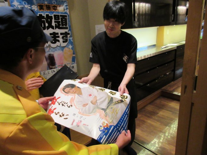 上諏訪駅周辺で、飲食店等に飲酒運転根絶を呼び掛けるポスターを配布しながらパトロールを行いました。
