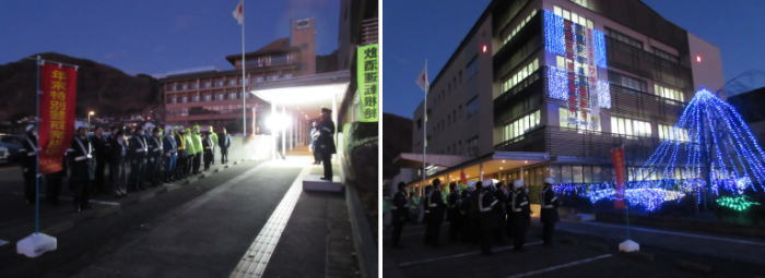 12月15日、年末特別警戒及び年末の交通安全運動の出陣式を行いました。年末にかけ、事件・事故の未然防止ため、パトロールを強化しました。