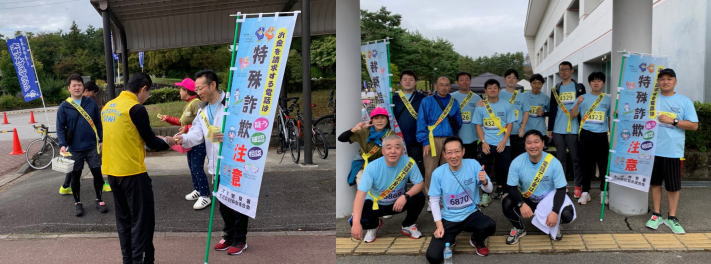 大町警察署、大北防犯協会連合会は、第42回大町アルプスマラソンにランニングポリスとして大会に参加しました。「電話でお金は詐欺」のタスキをつけて、来場者や沿道の皆様に被害未然防止を呼び掛けました。