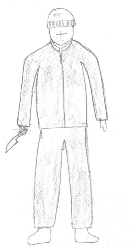 黒色系ニット帽、メガネなし、刃物様の凶器所持