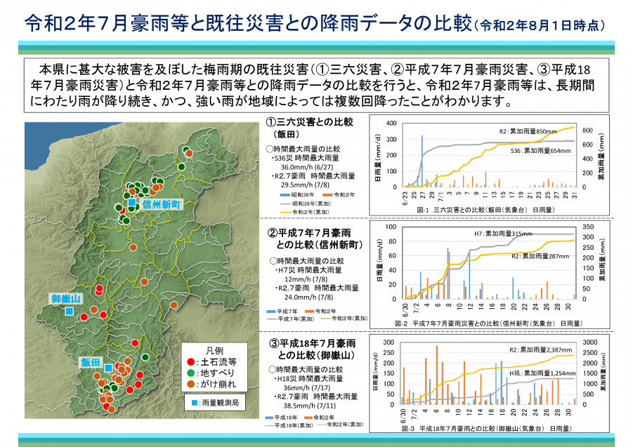 令和2年7月豪雨等による長野県内の土砂災害発生状況は以下のとおりです。