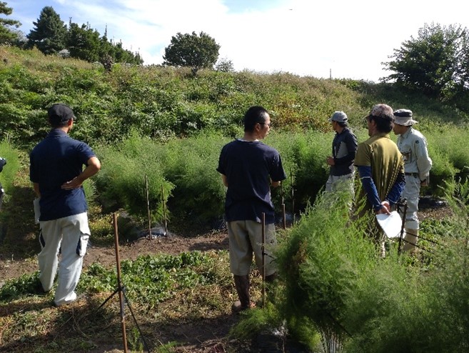 参加者から多くの質問が出され、短期完結栽培についての理解が深まったとともに、今後の課題も整理できたと思われます。現地ほ場のアスパラガスは良好な生育状態で来春の収穫が楽しみです。
